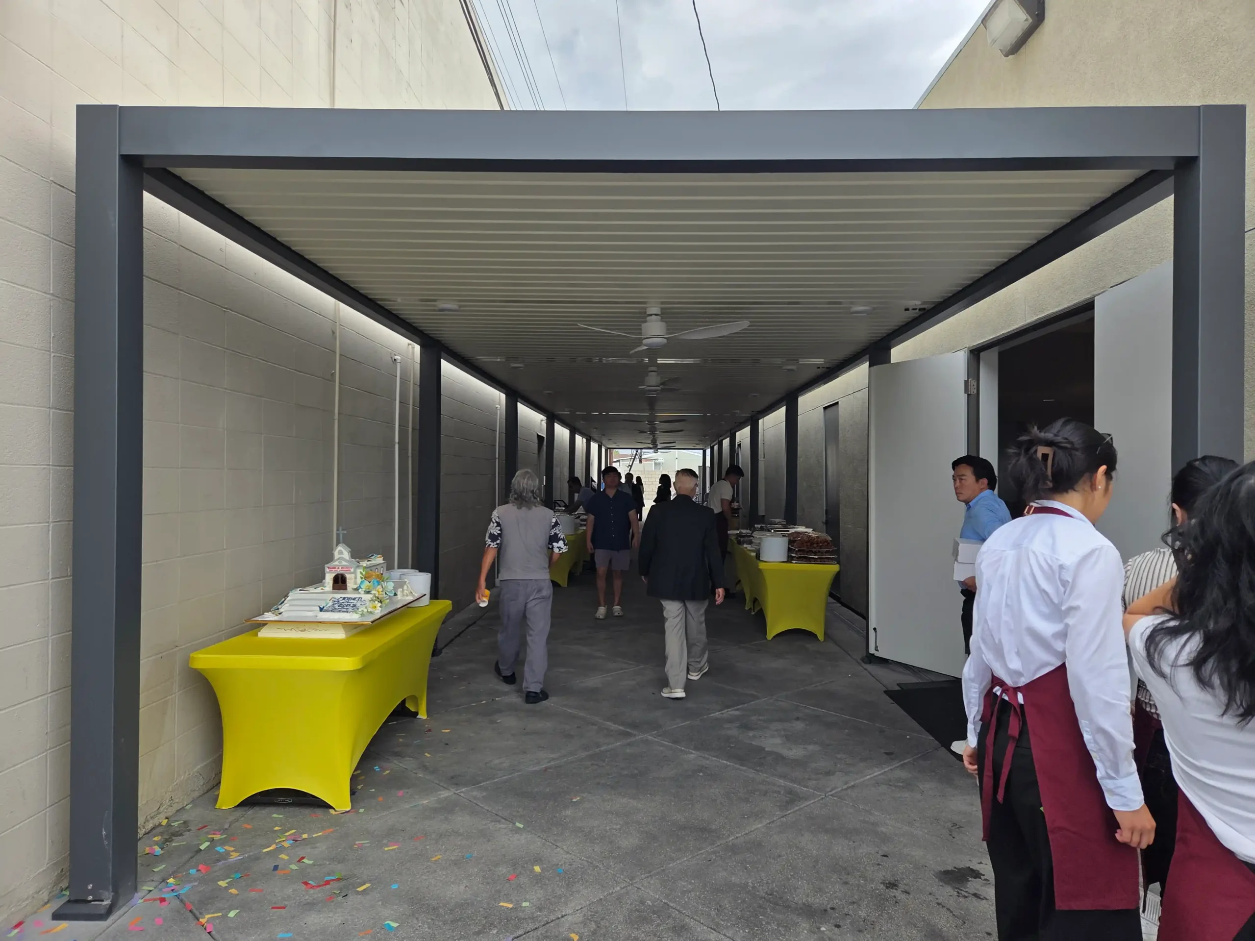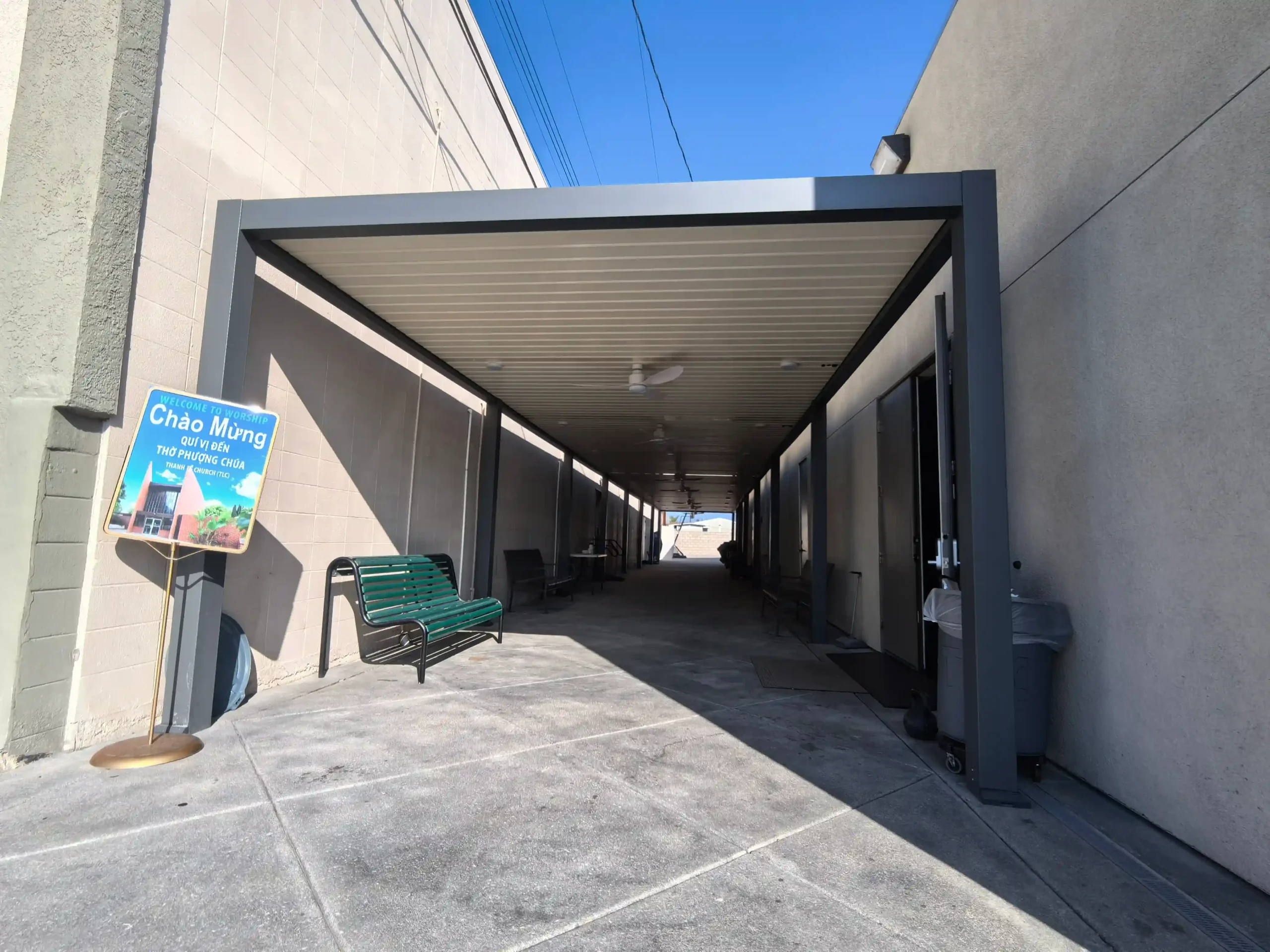 Located in the sun-drenched landscape of Los Angeles, CA, the Thanh Le Church project represents one of Sola’s most ambitious commercial installations to date. By installing a massive 13ft. x 100ft. solar-powered aluminium pergola, we successfully converted a neglected, heat-trapping corridor into a vibrant, multi-functional outdoor community hall. This project demonstrates that high-performance engineering and sustainable design can go hand-in-hand with rapid, efficient installation.