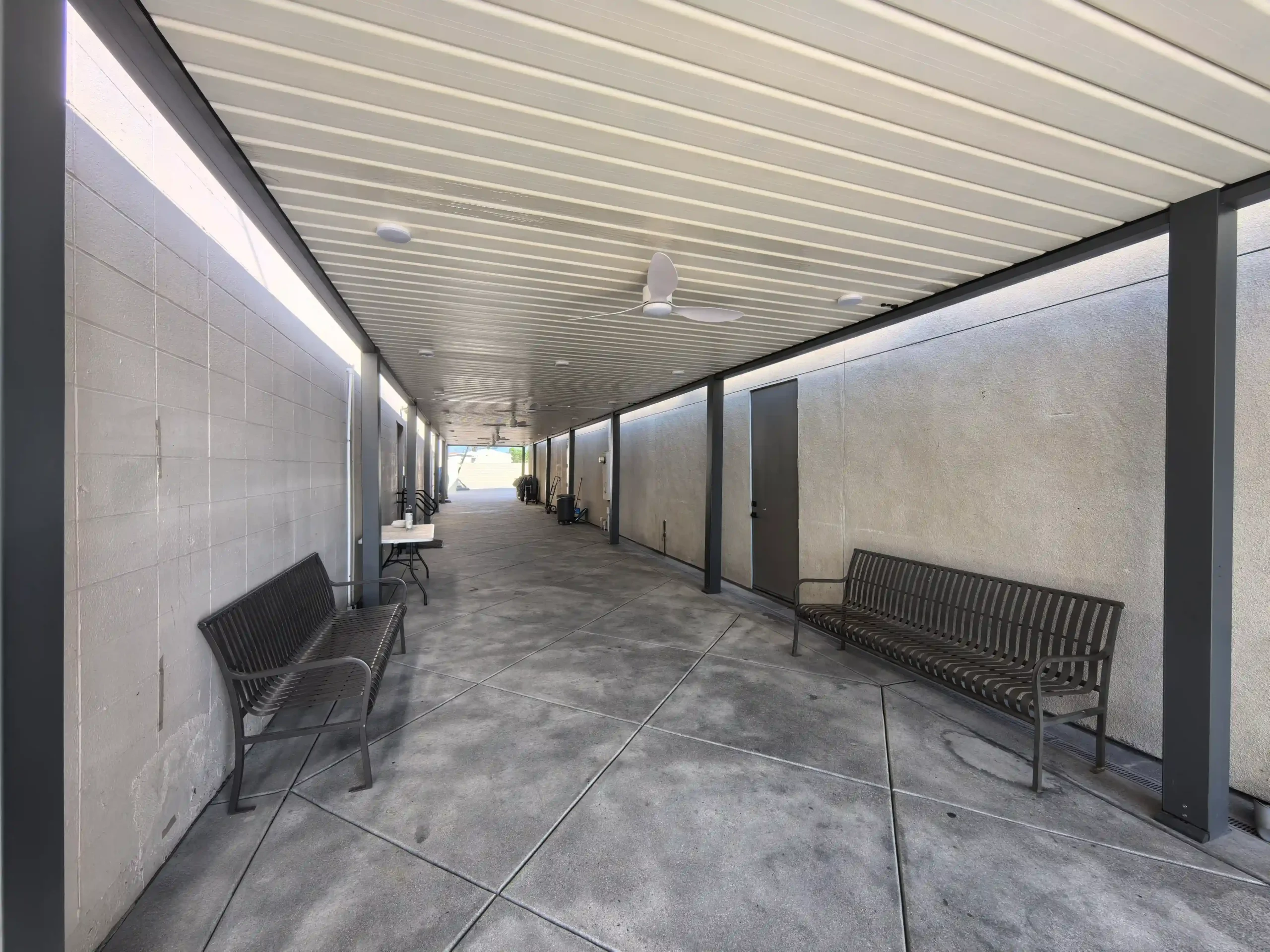 Sola’s solar system powers the pergola’s LED lights and industrial fans without extra wiring. The corridor is now bright at night and breezy by day, eliminating darkness and stuffiness.