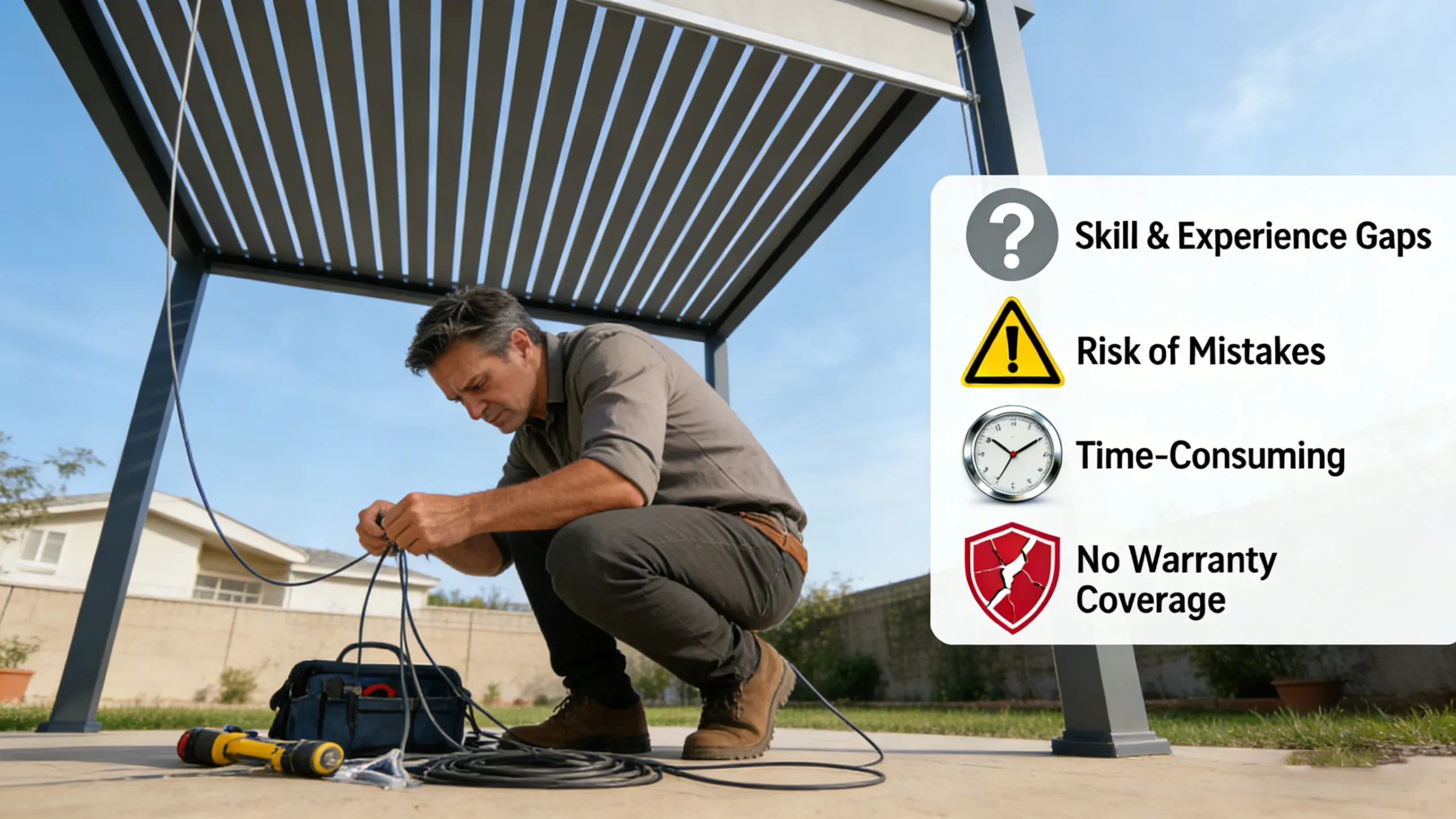 Once you've selected the perfect privacy solution for your enclosed pergola, you'll face a critical decision that determines success: install it yourself or hire professionals? On one hand, DIY installation saves labor costs; on the other, professional installation ensures precision, safety, and optimal performance—especially for complex systems like motorized shades or glass sliding doors. The right choice depends on your skill level, budget, the complexity of your enclosure structure, and your risk tolerance.