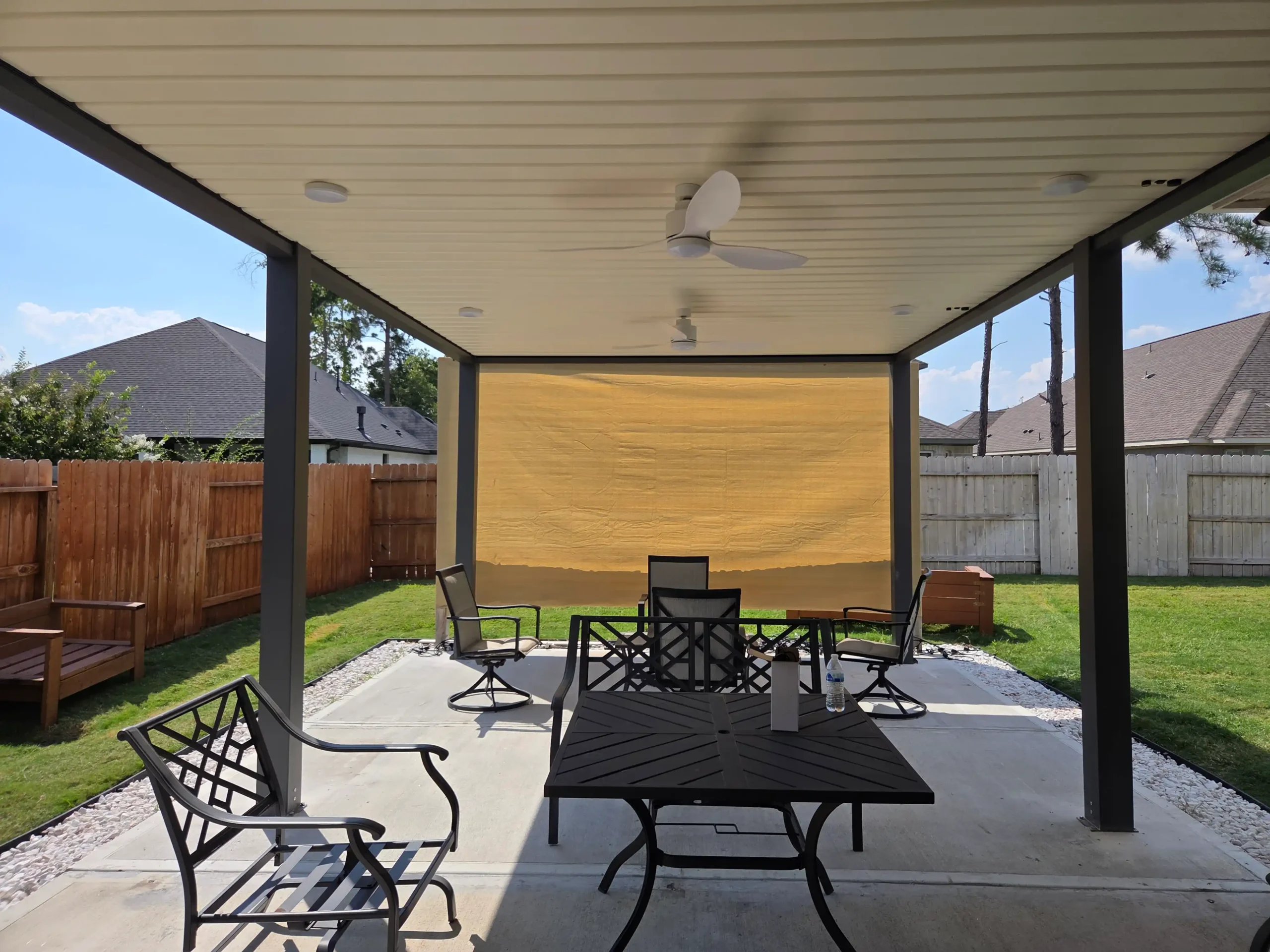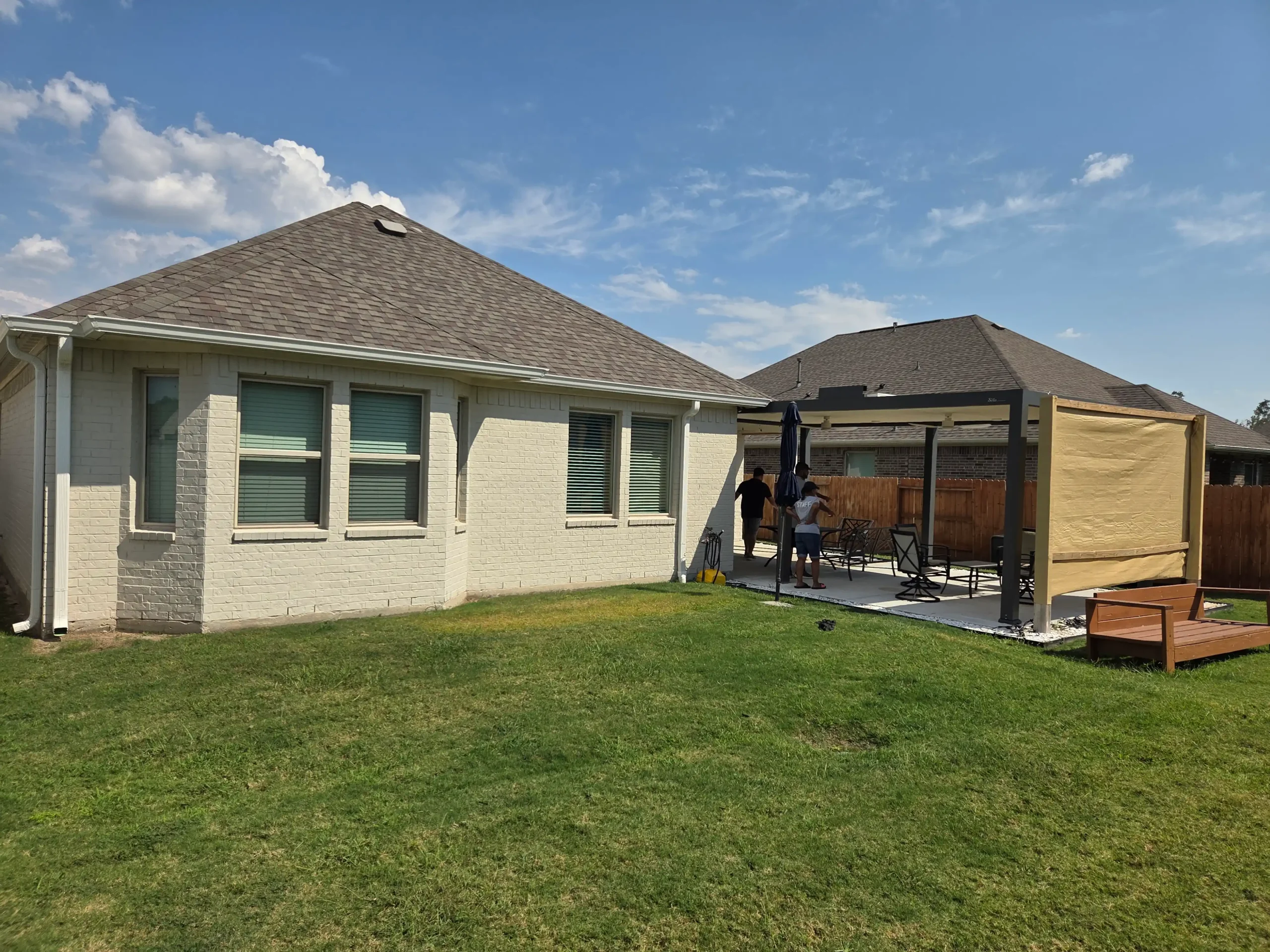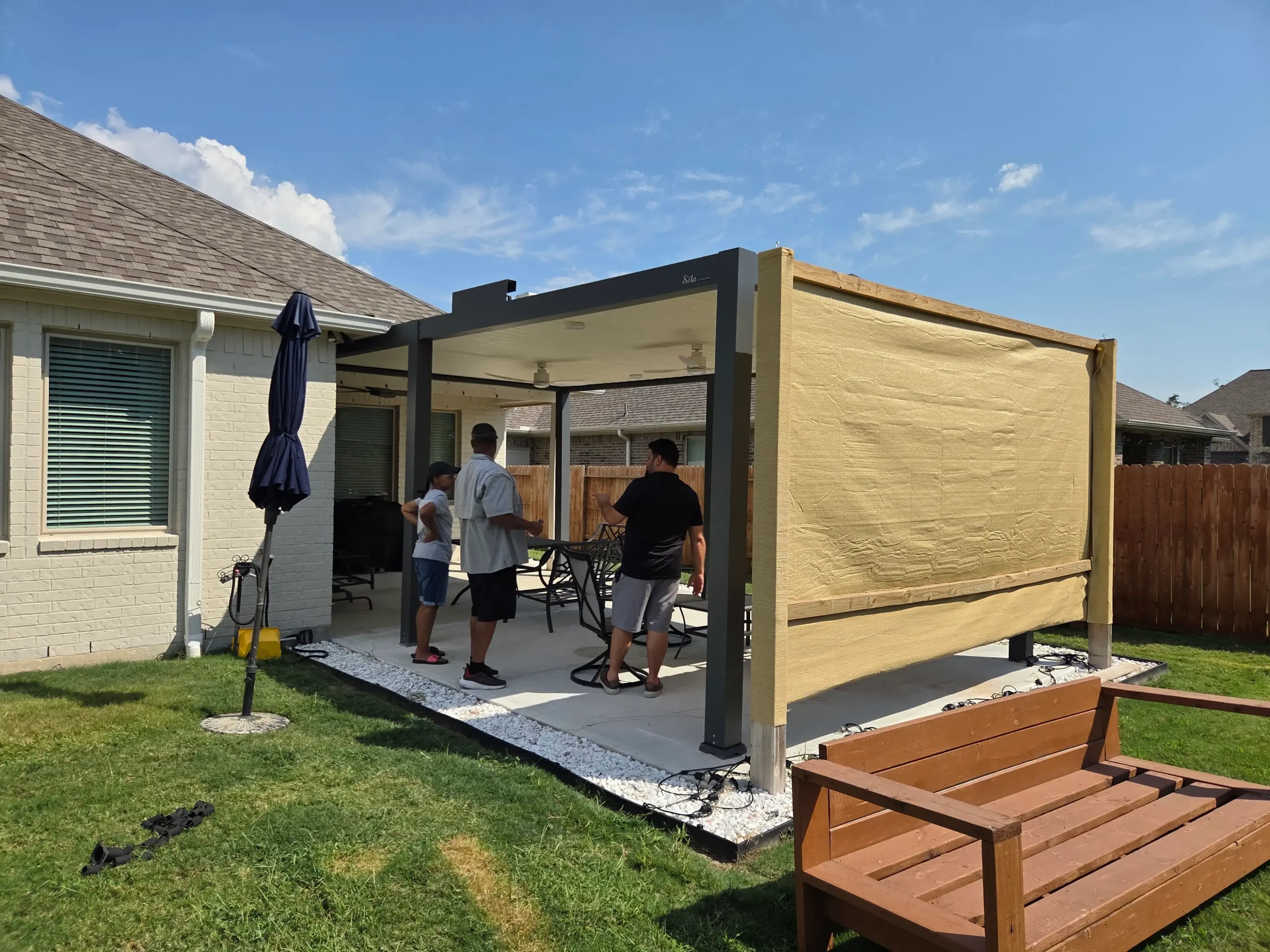 Their old wooden pergola offered no adjustable shade, leaving the patio baking under Houston’s intense sun, with no way to escape glare or high temperatures without a proper electric pergola.