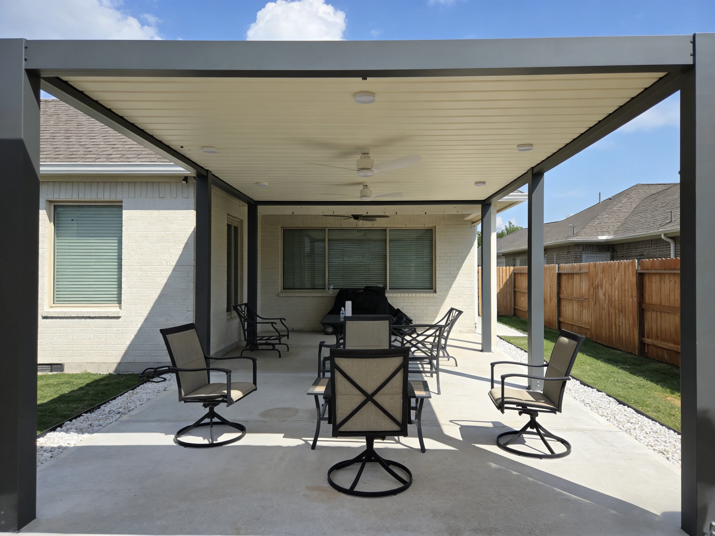 Without built-in fans or lighting, the patio became hot, dark, and unusable after sunset, cutting off opportunities to host gatherings or relax outdoors.
