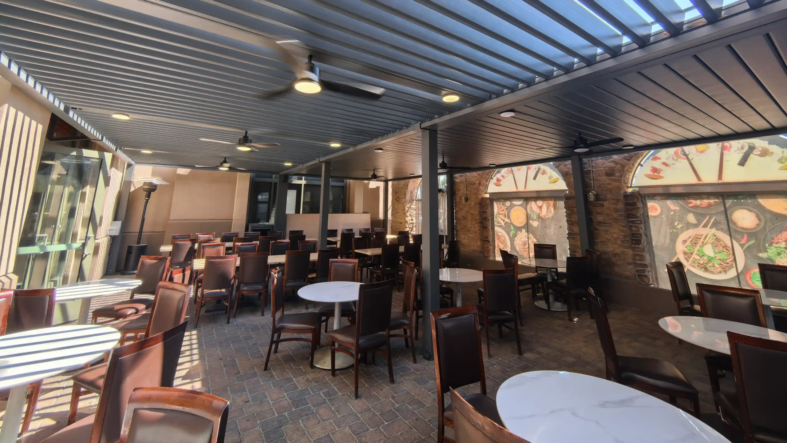 Buffet Star’s patio, once a weather - plagued and underutilized space, faced multiple challenges. Extreme sun exposure made it uncomfortable for diners, while rain and wind disrupted setups, leading to lost revenue from outdoor dining. The outdated and unappealing look also clashed with the restaurant’s modern “sushi & BBQ” brand, and the lack of comfort and proper airflow made the space undesirable.